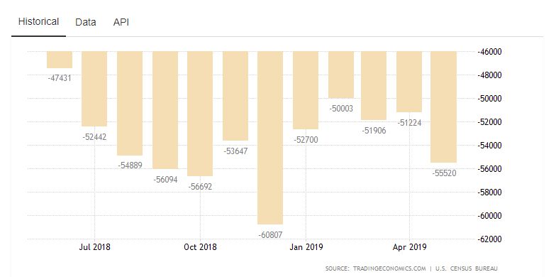 Das US-Handelsbilanzdefizit stieg im Mai auf ein Fünfmonatshoch, als die Importe von Gütern zunahmen. Dies war wahrscheinlich darauf zurückzuführen, dass die Unternehmen vor einem Anstieg der Zölle auf chinesische Waren wieder aufgestockt wurden, was einen deutlichen Anstieg der Exporte in den Schatten stellte.
