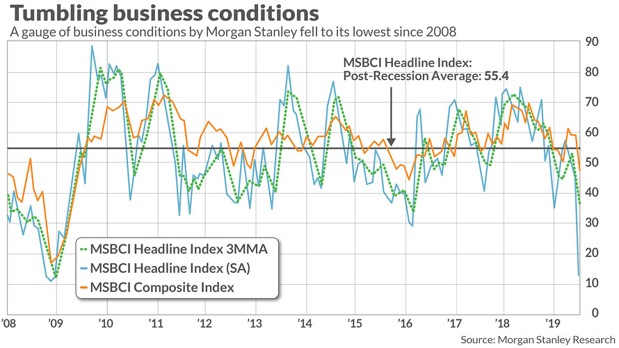 Nimmt man das Frachtaufkommen der letzten Monate her, so kann es nicht verwundern, dass das allgemeine Wirtschaftsklima und die Einschätzung der einzelnen Marktteilnehmer alles andere als rosig aussieht. Morgan Stanley schreibt dazu, dass sich die Erwartung der Unternehmer so schlecht darstellt wie zuletzt 2008: