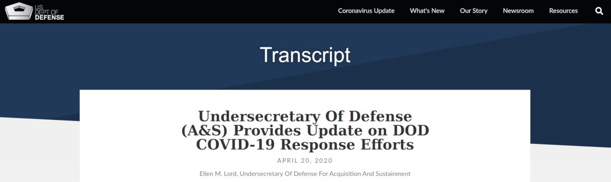 Undersecretary Of Defense Transkript – Bildquelle: Screenshot-Ausschnitt www.defense.gov