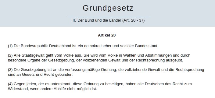 An dieser Stelle sei noch einmal auf unser Grundgesetz Artikel 20, insbesondere Absatz 4 hingewiesen: