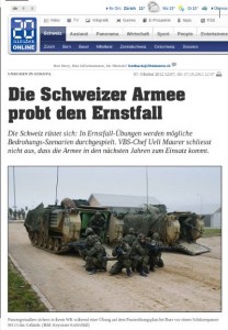 Einem Bericht von 20 Minuten Online / Der Sonntag zufolge geht die neutrale Schweiz davon aus, dass in den nächsten Jahren die landeseigene Verteidigung aufgrund massiver Probleme in der EU zum Grenzschutz eingesetzt werden muss: