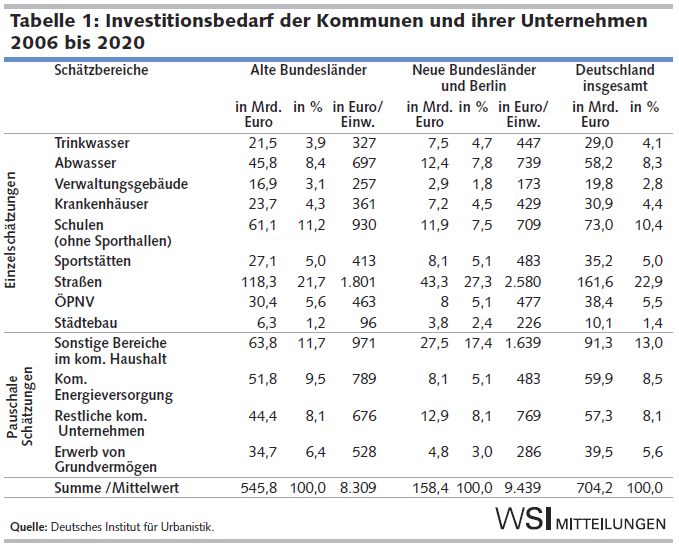 Bereits 2009 kam das Deutsche Institut für Urbanistik zu einem verherrenden Urteil. So bezifferte das Institut den Investitionsbedarf der Kommunen bis 2020 auf eine Summe von 704 Milliarden Euro!