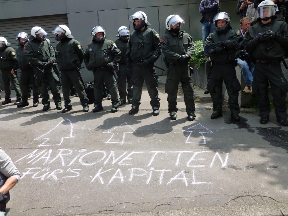 Aufgenommen auf der Blockupy-Demo in Frankfurt am 1. Juni 2013 bei der der deutsche Staat sein Gewaltmonopol einmal mehr massivst überschritten hat und die immer offensichtlichere Fratze eines Polizeistaates zeigt: