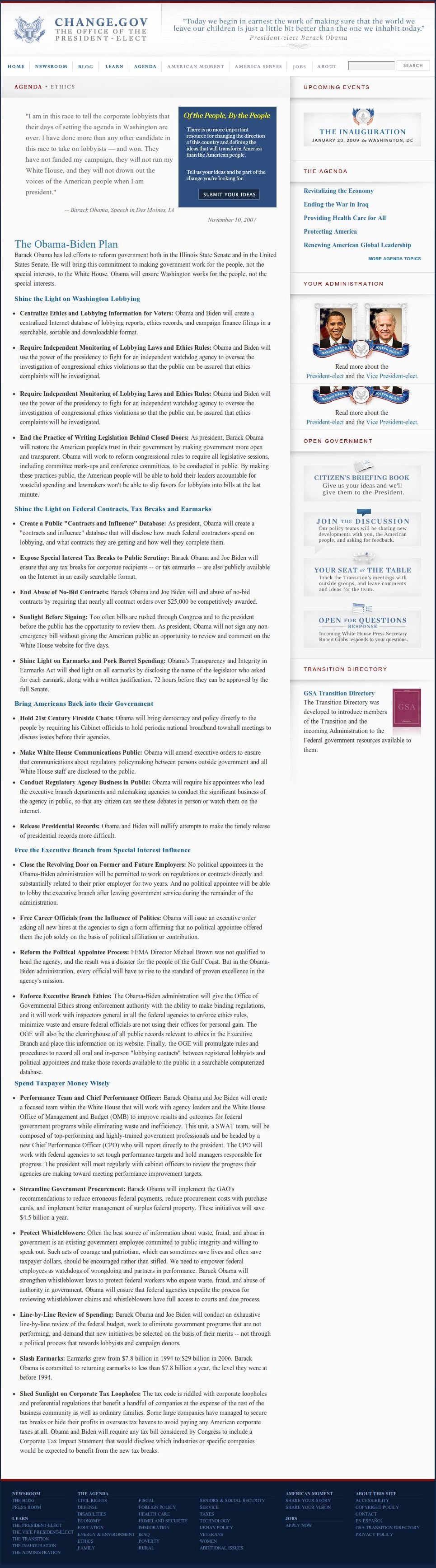 Change.gov – Ethics – Bildquelle: Screenshot web.archive.org / Für Vollansicht bitte anklicken (Größe ca. 0,8 MB)