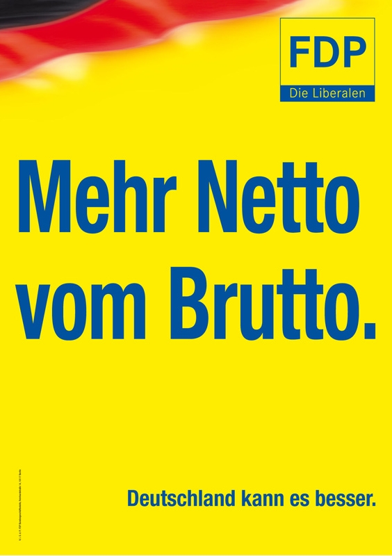 Sagenhafte 11,03€ mehr im Monat je Erwerbstätigen. Das ist mal ’ne Zahl. Würde man die 22 Milliarden € auf die Gesamtbevölkerung von ca. 80 Mio. umlegen, kämen exorbitante 5,73€ je Deutschen und Monat heraus. Da kann man wirklich mal von einem Erfolg und vom Einhalten eigener Wahlversprechen reden! Chapeau, liebe FDP. Aller erste Sahne!