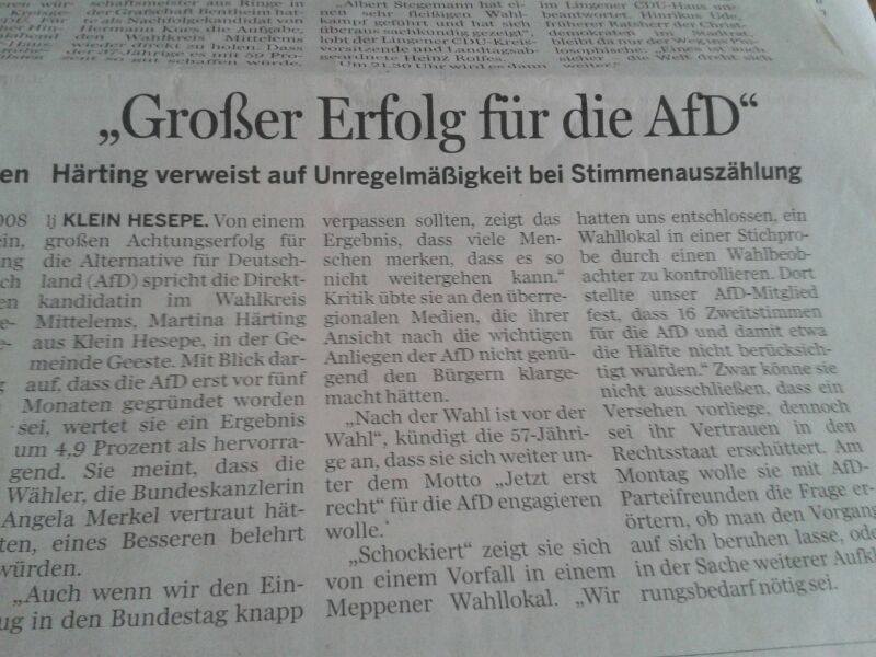 In einem Meppener Wahllokal wurden 16 Zweitstimmen für die AfD nicht berücksichtigt. Freiwillige Wahlbeobachter hatten stichprobenartig in diesem Wahllokal nachkontrolliert.