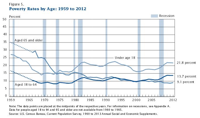 15% (!) der US-Bevölkerung leben damit unterhalb der Armutsgrenze, die in den USA derzeit für eine Familie mit zwei Erwachsenen und zwei Kindern bei 22.811 US-Dollar liegt. 21,8% der Kinder unter 18 Jahren und 24,4% bzw. 5,8 Millionen der unter 6-Jährigen sind dieser Gruppe zuzuordnen.