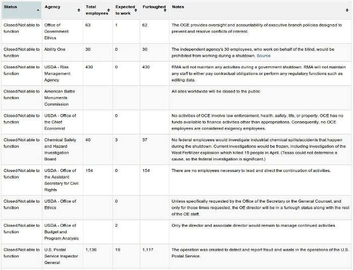Seit Montagabend ist die ReGIERung der US(t)A(si) offiziell „heruntergefahren“. So zumindest eine wortwörtliche Übersetzung des „Shutdowns“. Doch „heruntergefahren“ wurde natürlich nichts, was wichtig für das US-Regime ist. Bei CNN ist eine Aufstellung der betroffenen ReGIERungseinrichtungen online gestellt – hier ein kleiner Ausschnitt daraus: