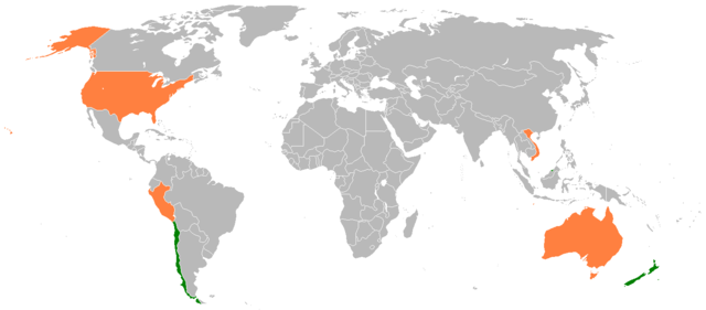 TPP-Mitglieds- (grün) bzw. Verhandlungsländer (orange) – Bildquelle: Wikipedia / Taifarious1