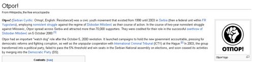 Als Slobodan Milosevic im Oktober 2000 seinen Stuhl als Präsident Yugoslawiens räumte, sahen viele Kommentatoren die Jugendbewegung Otpor! (deutsch: Widerstand!) als auslösenden Moment für dessen Rücktritt an. Nach zwei Jahren gewaltfreiem Kampf gegen die Regierung Milosevic hatte die Bewegung mehr als 70.000 Unterstützer und galt als Unterstützer demokratischer Reformen und Kämpfer gegen die Korruption in (Ex-)Yugoslawien.