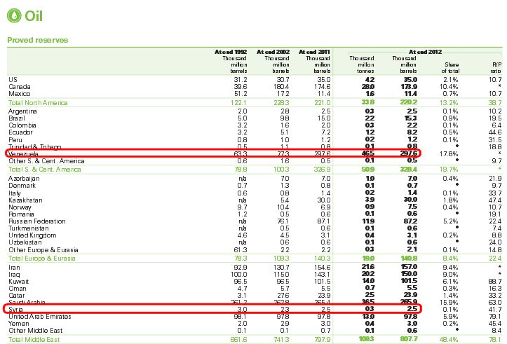 Vielen unbekannt dürfte sein, dass auch Syrien über Erdöl- und -gasreserven verfügt. Zwar nur in beschaulichem Mass (Öl 2,5 Milliarden Barrel, Gas 0,3 Kubikmeter), aber dabei sind die Gasfelder, die man im levantischen Becken zu dem auch ein Teil zur syrischen Küste gehört, noch nicht berücksichtigt.