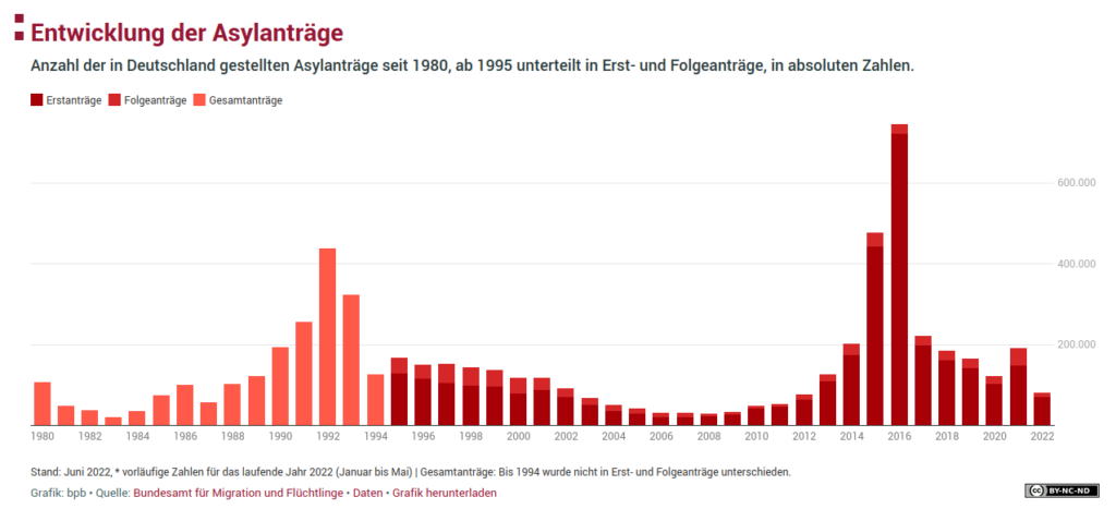Entwicklung der Asylanträge – Bildquelle. Screenshot-Ausschnitt www.bpb.de