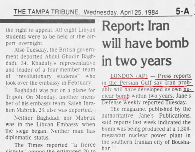 Wir wissen, dass Trump den Iran schon in seiner ersten Amtszeit als Gegner/Feind „ausgemacht“ hat. Wir wissen, dass die Menschen seit Jahrzehnten darauf konditioniert wurden, zu glauben, dass der Iran kurz vor der Entwicklung der Atombombe steht.